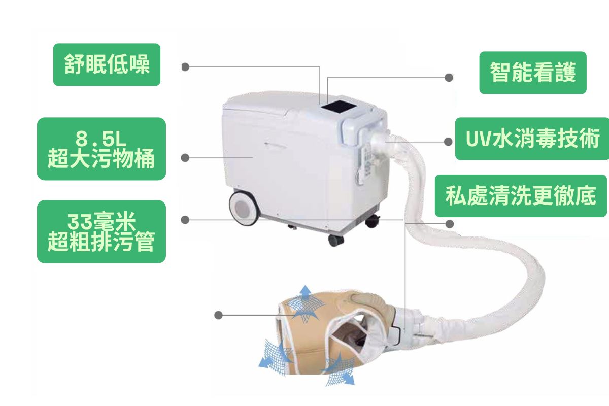 Solonic是全球高齡照護人員夢寐以求的全自動排泄處理機器人。在面對無法預測的排尿排便時間點,透過感測器就可以自動偵測出來,並且擁有全自動化排泄吸引、溫水洗淨和暖風烘乾等等的功能。在全自動系統的照護下,可以讓受照護者和照護人員能享受安心、乾淨、舒適的睡眠。